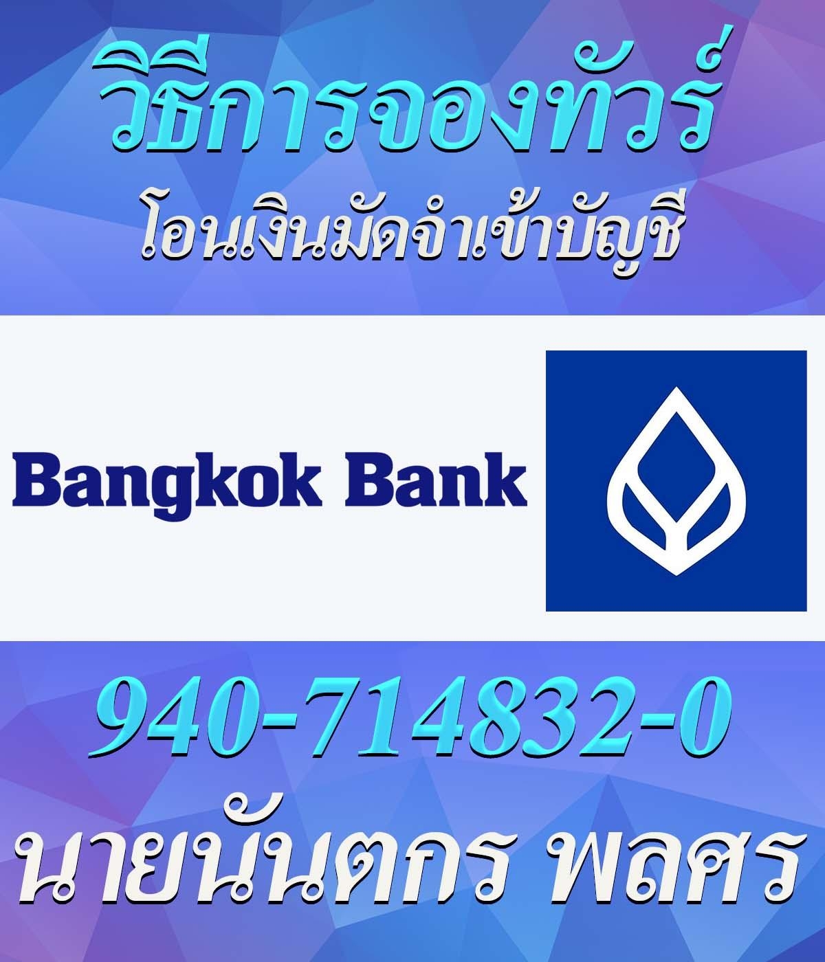 ธนาคารกรุงเทพ 9407148320 ชื่อบัญชี นายนันตกร พลศร