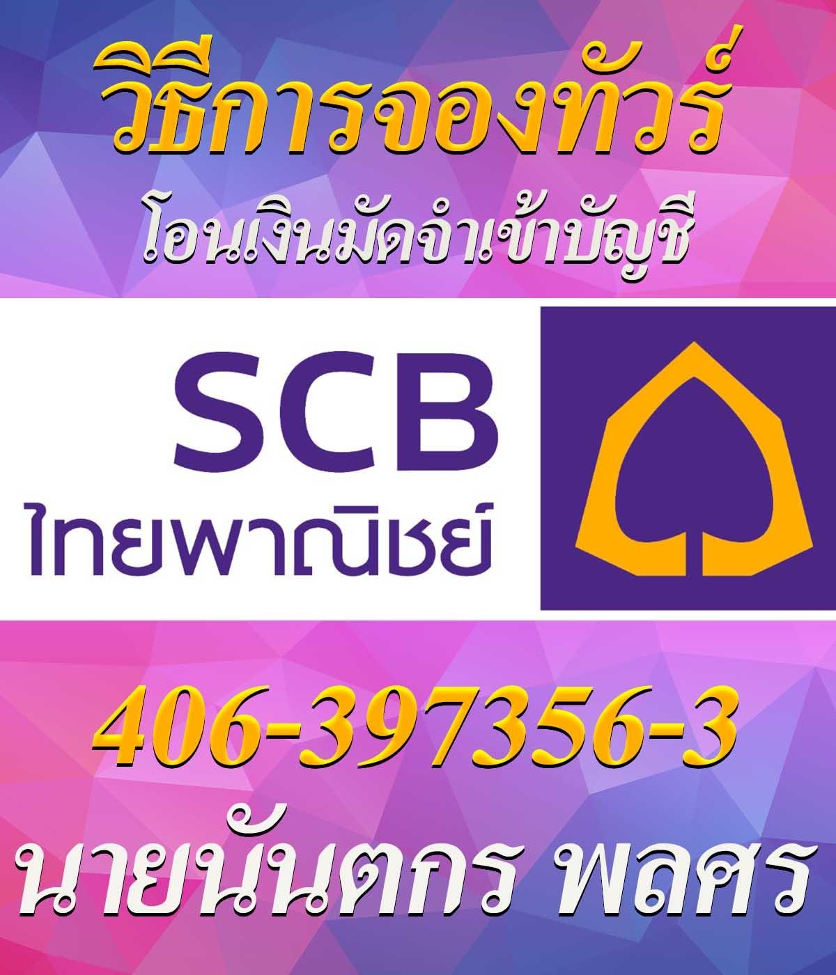 ธนาคารไทยพานิช 4063973563 ชื่อบัญชี นายนันตกร พลศร